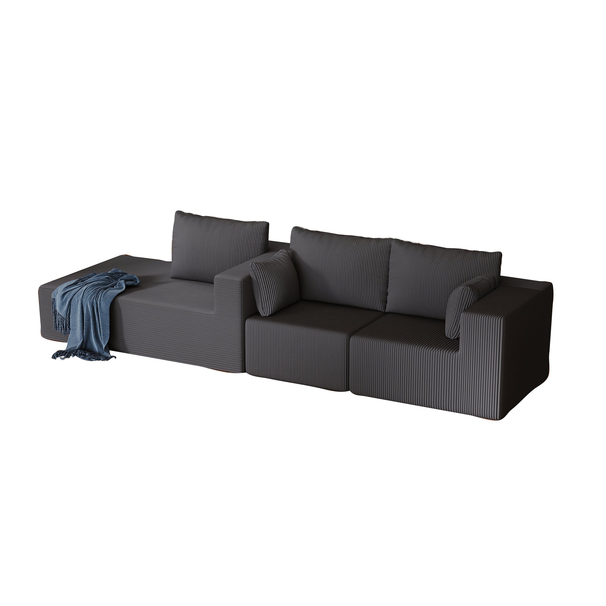 - Comfortable Fabric: The sofa upholstered with classic striped corduroy fabric, with a soft and comfortable touch. Available in four colors: beige, dark gray, green, and reddish brown.