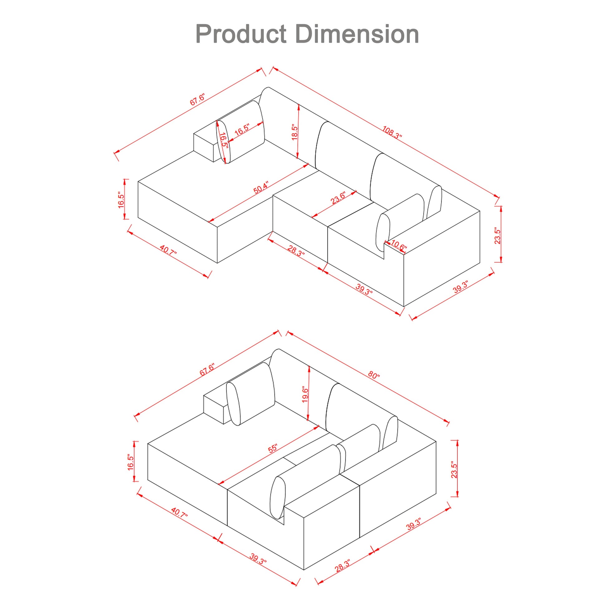 108.3' Sectional Foam Couch,L Shape Sofa with Chaise Lounge,Modular