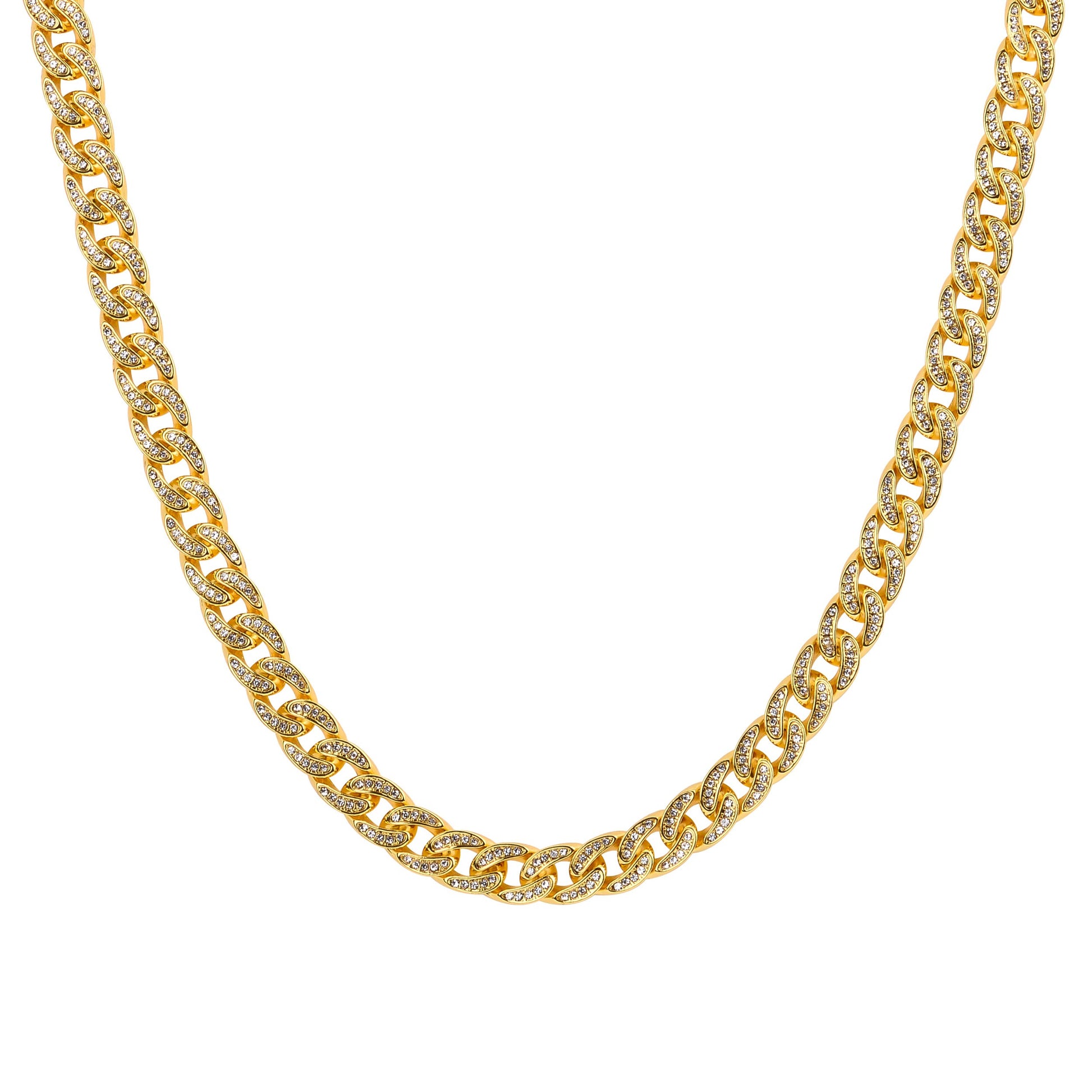 CREW cuban chain is a meticulously crafted solid cuban link chain in fully iced out and studded with flawless rhinestone crystals set to precision.  Wear it on a night out of town or on a T-Shirt just out and about.  Wear it with confidence