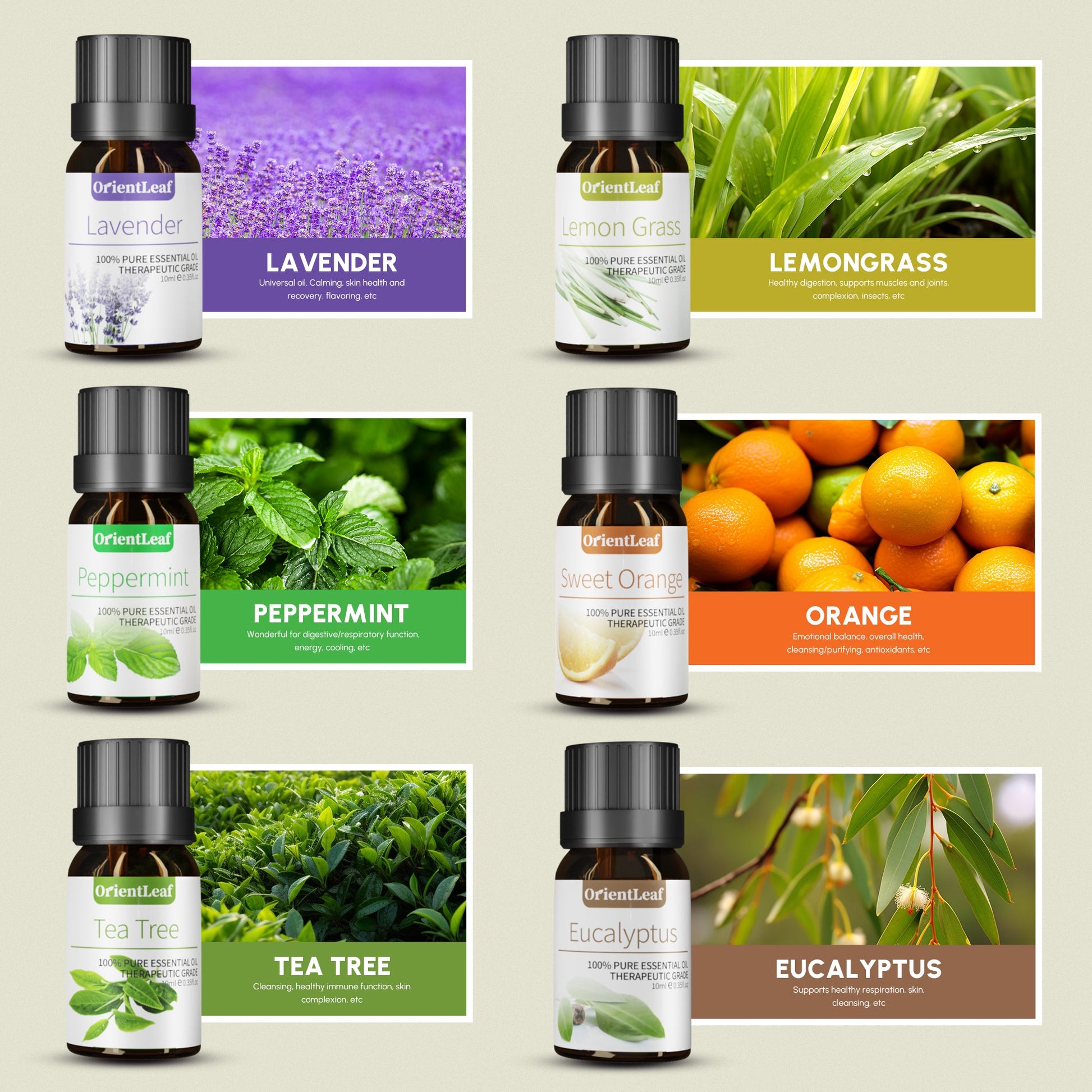 🔸【OrientLeaf 6Pcs 10ml Essential Oils Sets】