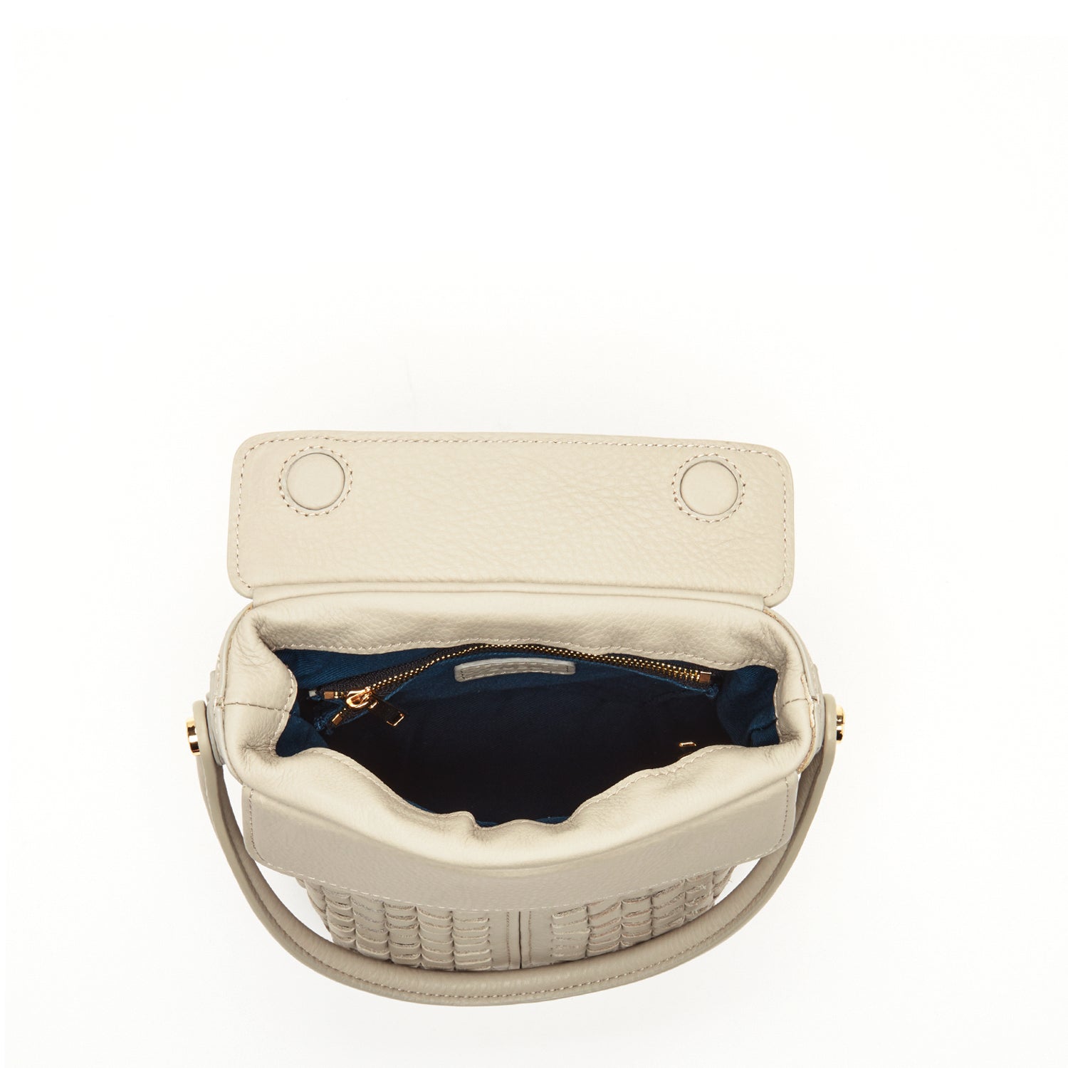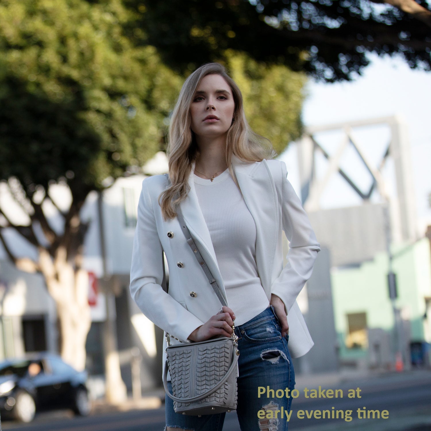 Woven Leather Bucket Bag Quilted Grayish Beige Crossbody Purse Women's